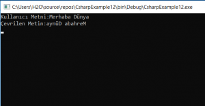 1 2 3 4 5 6 7 8 9 10 11 12 13 14 15 16 17 18 19 20 21 22 23 24 25 26 27 | class Program { static string ReverseString(string str) { int len = str.Length; string reversed = ""; for (int i = 0; i < len; i++) { reversed += str[len - (i+1)]; } return reversed ; } static void Main(string[] args) { string myStr="Merhaba Dünya"; string reversed = ReverseString(myStr); Console.WriteLine("Kullanıcı Metni:" + myStr); Console.WriteLine("Çevrilen Metin:" + reversed); Console.ReadLine(); } } |