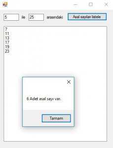 Bu yazımızda kullanıcının belirlediği başlangıç ve bitiş sayıları arasında bulunan Asal Sayıları listeleme ve kaç tane Asal Sayı olduğunu gösterme işlemi yapan bir örnek gerçekleştireceğiz.