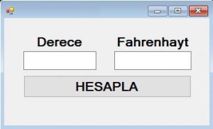 Derece olarak textbox1 e girilen değerin butona basıldığında Fahrenhayt’a çevrilmesi için Button1’e yazılacak kodlar: