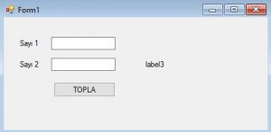 Forma tasarımı için Form’ a 3 adet Label nesnesi, 2 adet textBox Nesnesi ve 1 adet Button yerleştirelim.