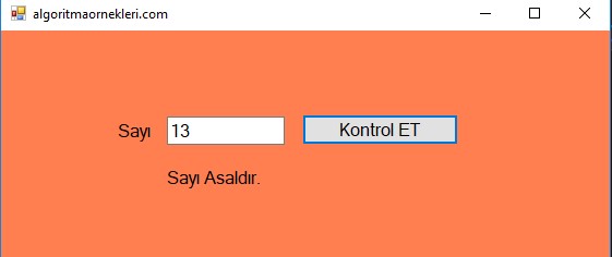 Kullanıcı tarafından TextBox içine girilen sayının asal sayı olup olmadığını kontrol eden programa ait Windows Form Application Örneği. Örnekte For Döngüsü ve...