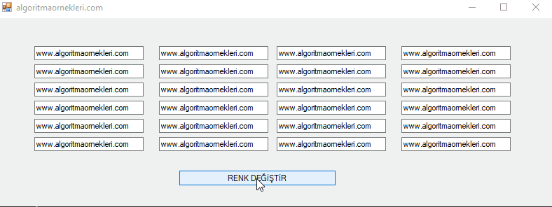 Bazı durumlarda program içinde belirli bir şarta bağlı olarak Form üzerindeki elemanların özelliklerini topluca değiştirmek isteyebilirsiniz. Bu örnekte Form...