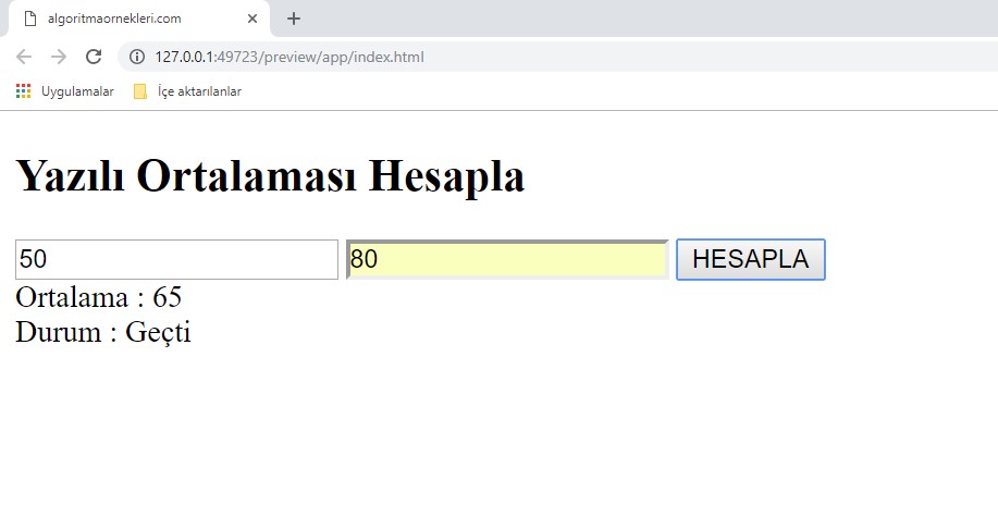 JavaScript ile kullanıcıdan textBox ile 2 yazılı notu isteyerek, bu sınavlara ait ortalamayı hesaplayarak sonucu oluşturulan div içerisinde görüntüleme...