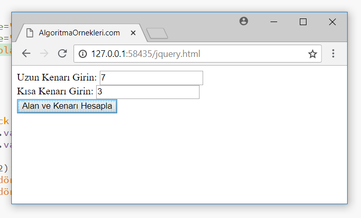 Aşağıdaki jquery kodu Dikdörtgenin çevresinin ve alanının nasıl hesaplandığını göstermektedir. Dikdörtgenin Alanını ve Çevresini hesaplama kodu JavaScript <...