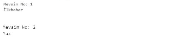 Kullanıcıdan (1-4) arasında sayı alınacak, bu sayıya göre sırasıyla İlkbahar-yaz-sonbahar-kış yazan programın kodlarını yazınız.