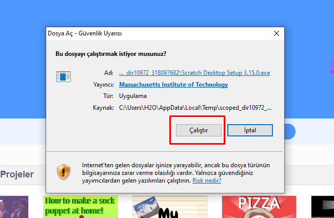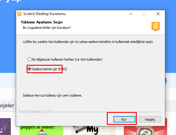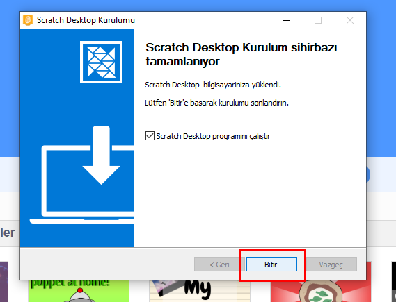 İndirme işlemi bittikten sonra dosyaya çift tıklayarak kurulum aşamasına geçebiliriz. Çift tıkladıktan sonra aşağıdaki adımları izleyerek scratch programını kuruyoruz. Kurlum bittikten sonra scratch programının bir kısayolu masaüstüne eklenecektir. Çalıştırmak için masaüstündeki kısayola tıklayıp programı çalıştırabilirsiniz.