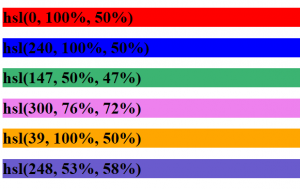 Yukarıdaki örnekte HSL değerleri üzerinden farklı renk gösterimi yapılmıştır.