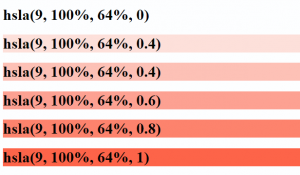 Yukarıdaki örnekte HSLA değerleri kullanılarak farklı renk gösterimi yapılmıştır.