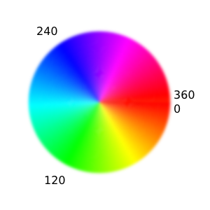 Ton, renk çarkı üzerinde bir dereceye kadar baz rengi belirtir. Kırmızı 0 °, yeşil 120 °, mavi 240 ° ve nihayetinde yine 360 ° döndürür.
